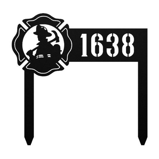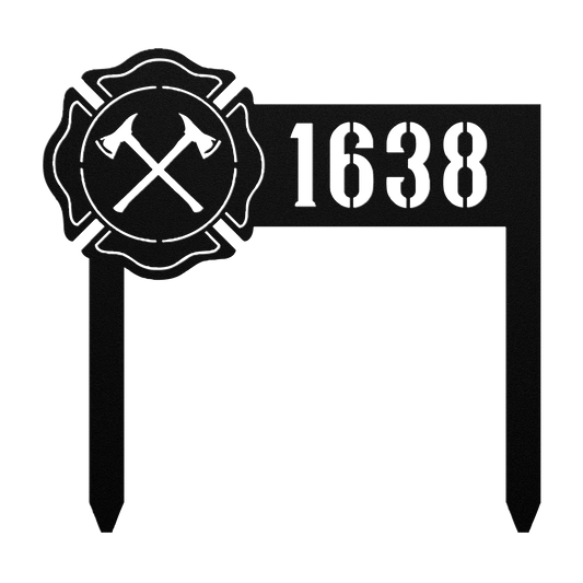 Firefighter Address Sign | Crossed Axes Metal Curb Marker