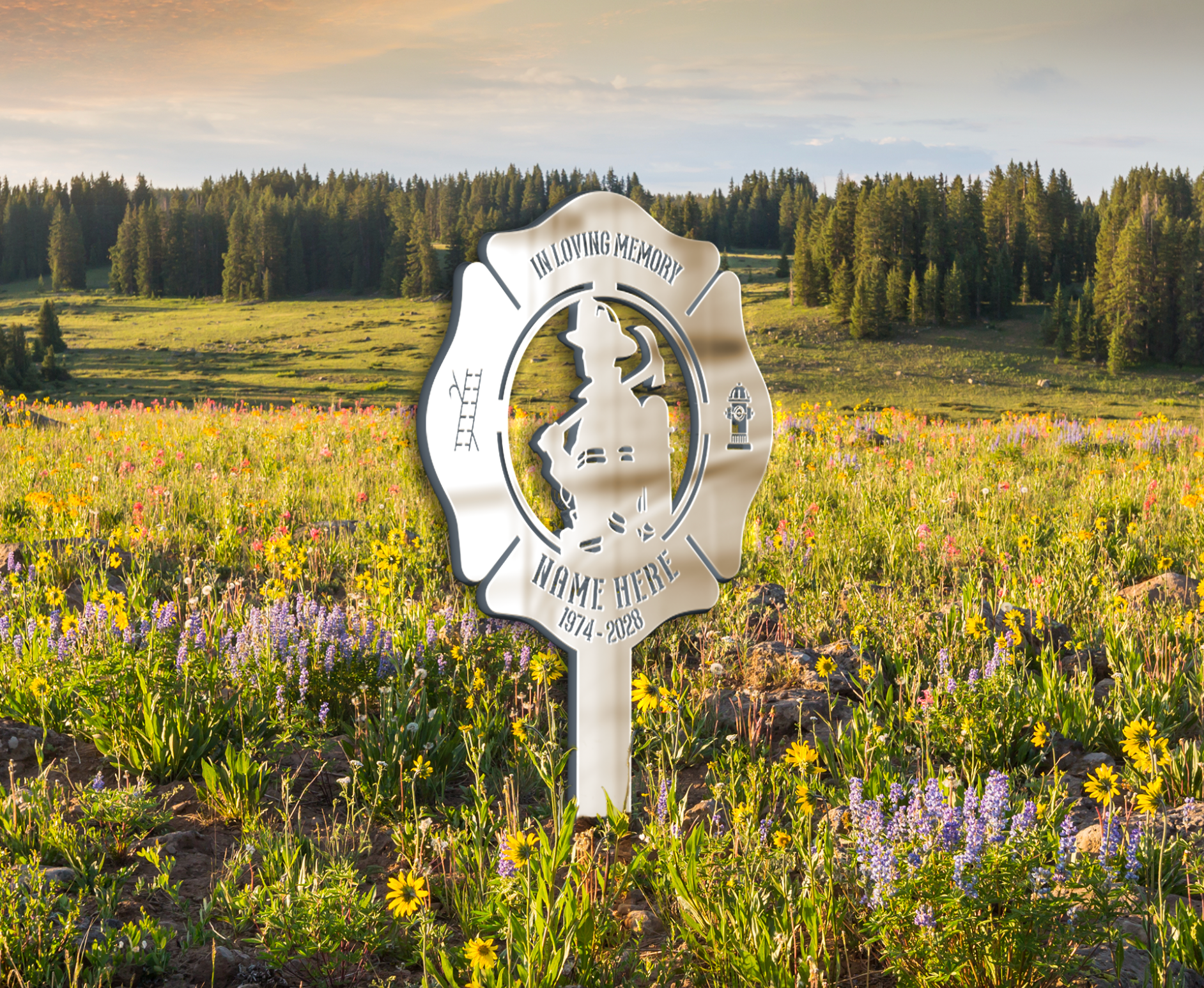 Honor the legacy of a loved one with this Personalized Firefighter Memorial Stake, a timeless tribute to their life and service. Crafted from durable 16-gauge steel with a sleek titanium finish, it shines in the sunlight, symbolizing both strength and remembrance.