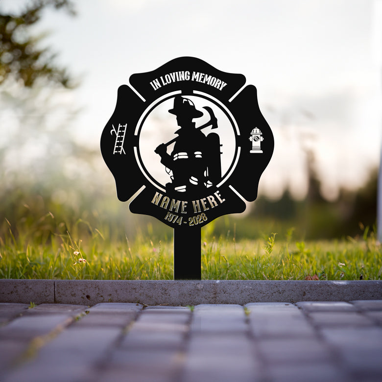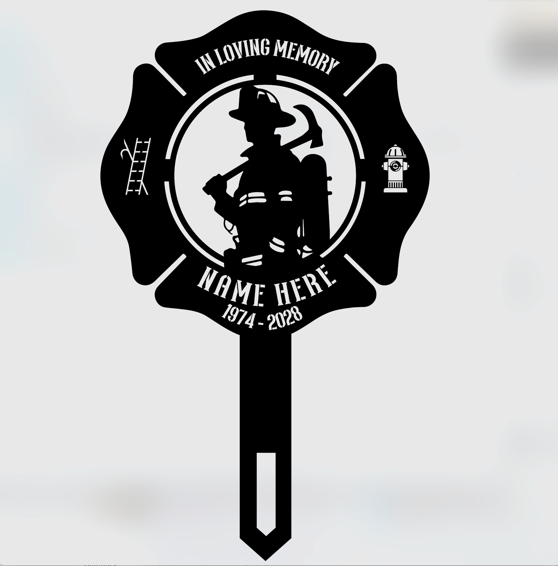 Personalized Firefighter Memorial Stake | Black or Titanium