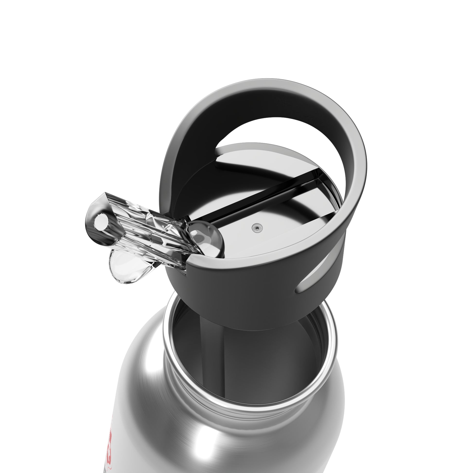 Flip-top spout and built-in straw for easy, one-handed sipping.