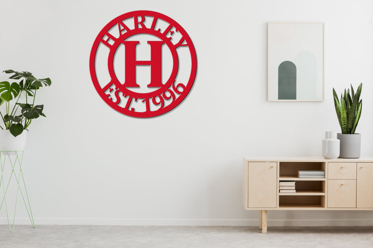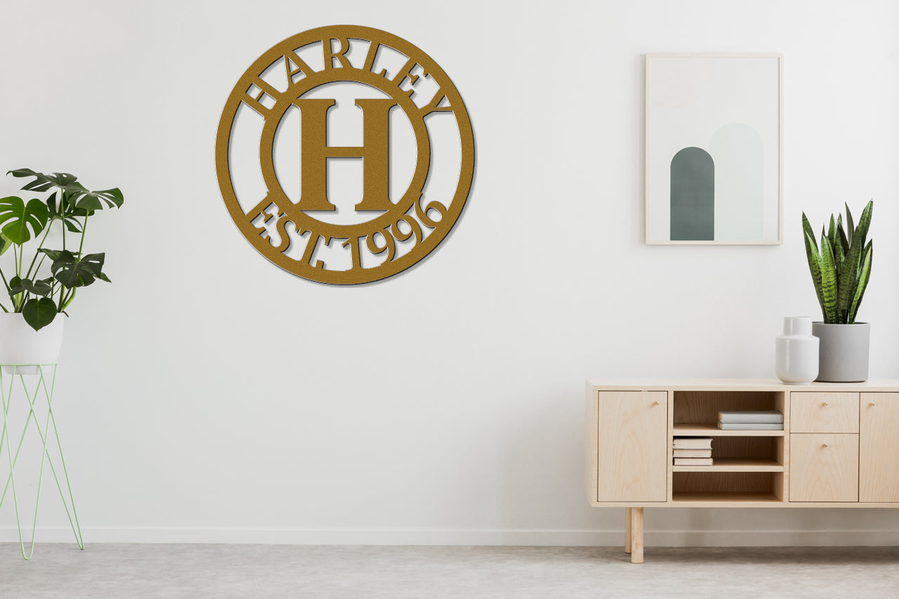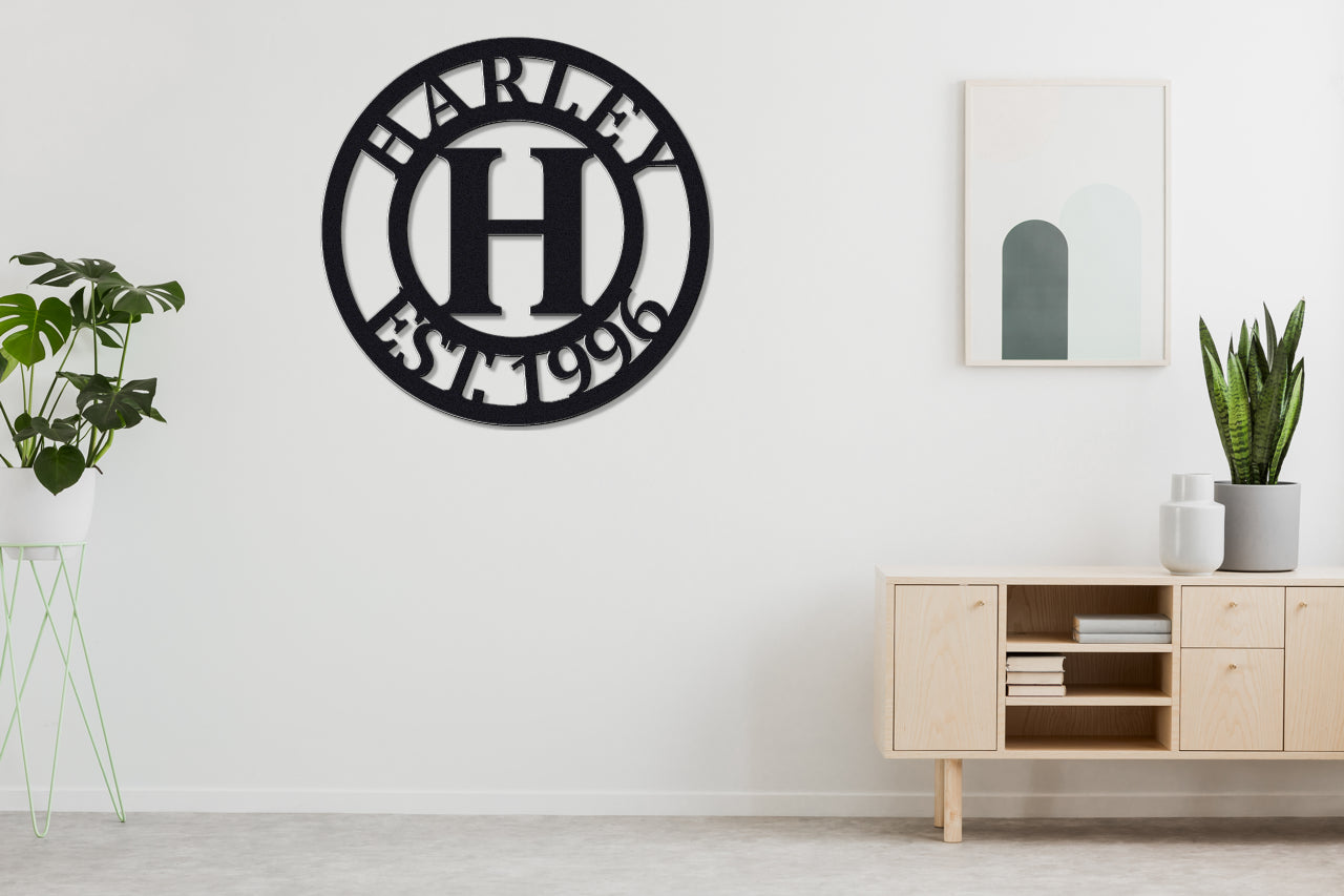 Personalized Metal Name Sign - Center Initial