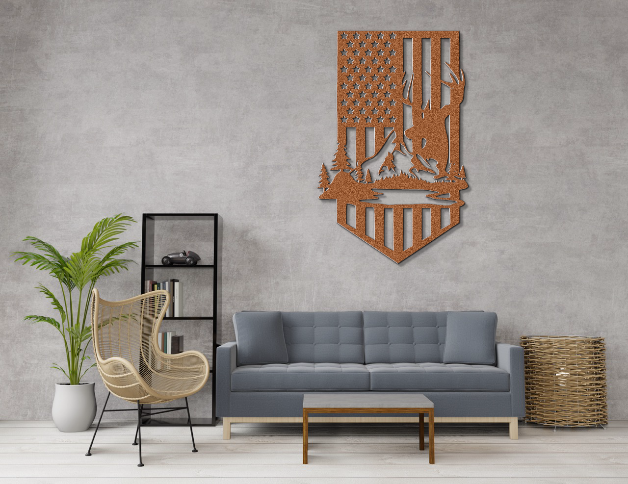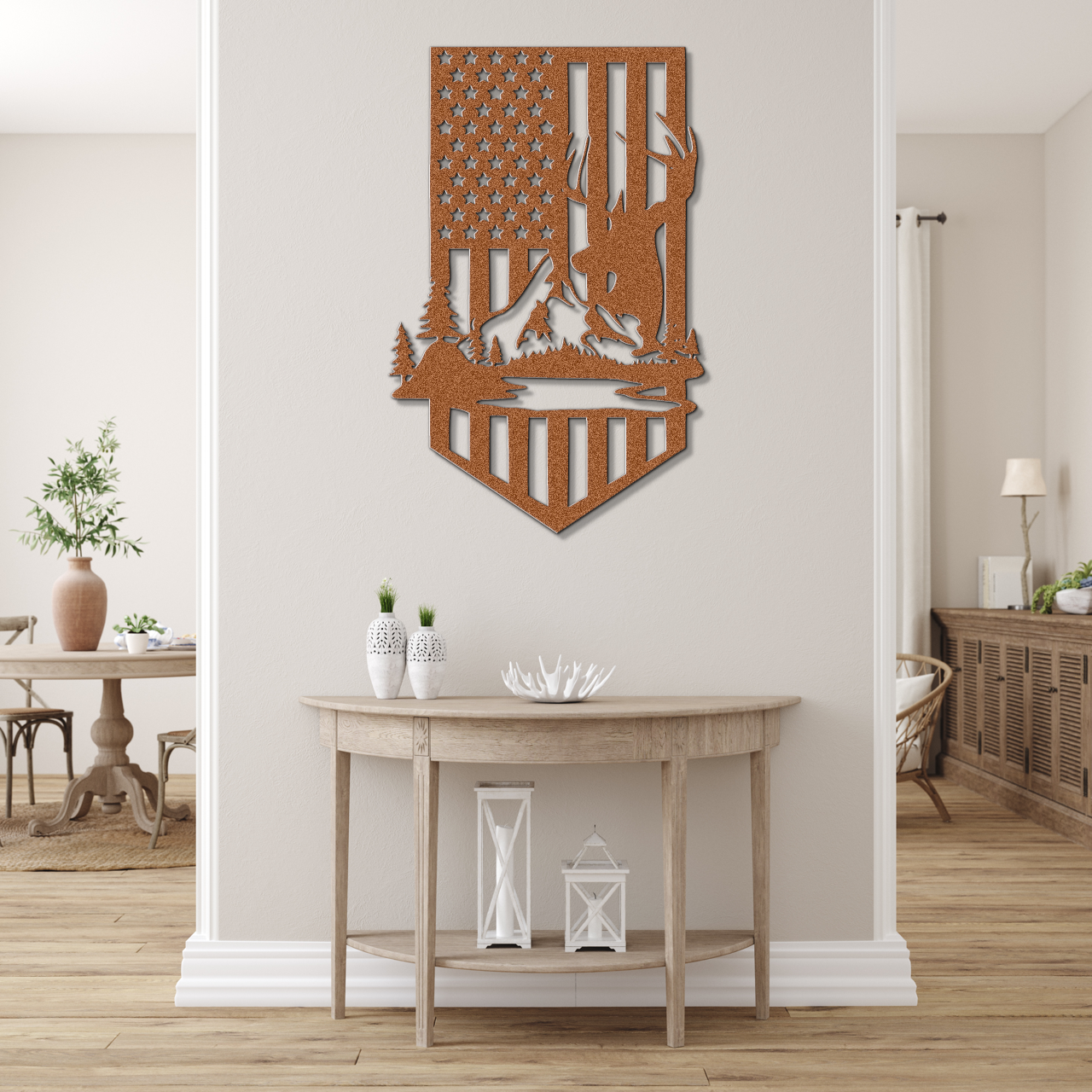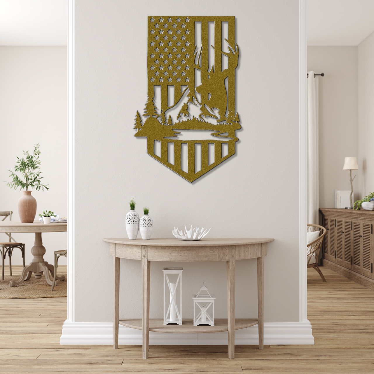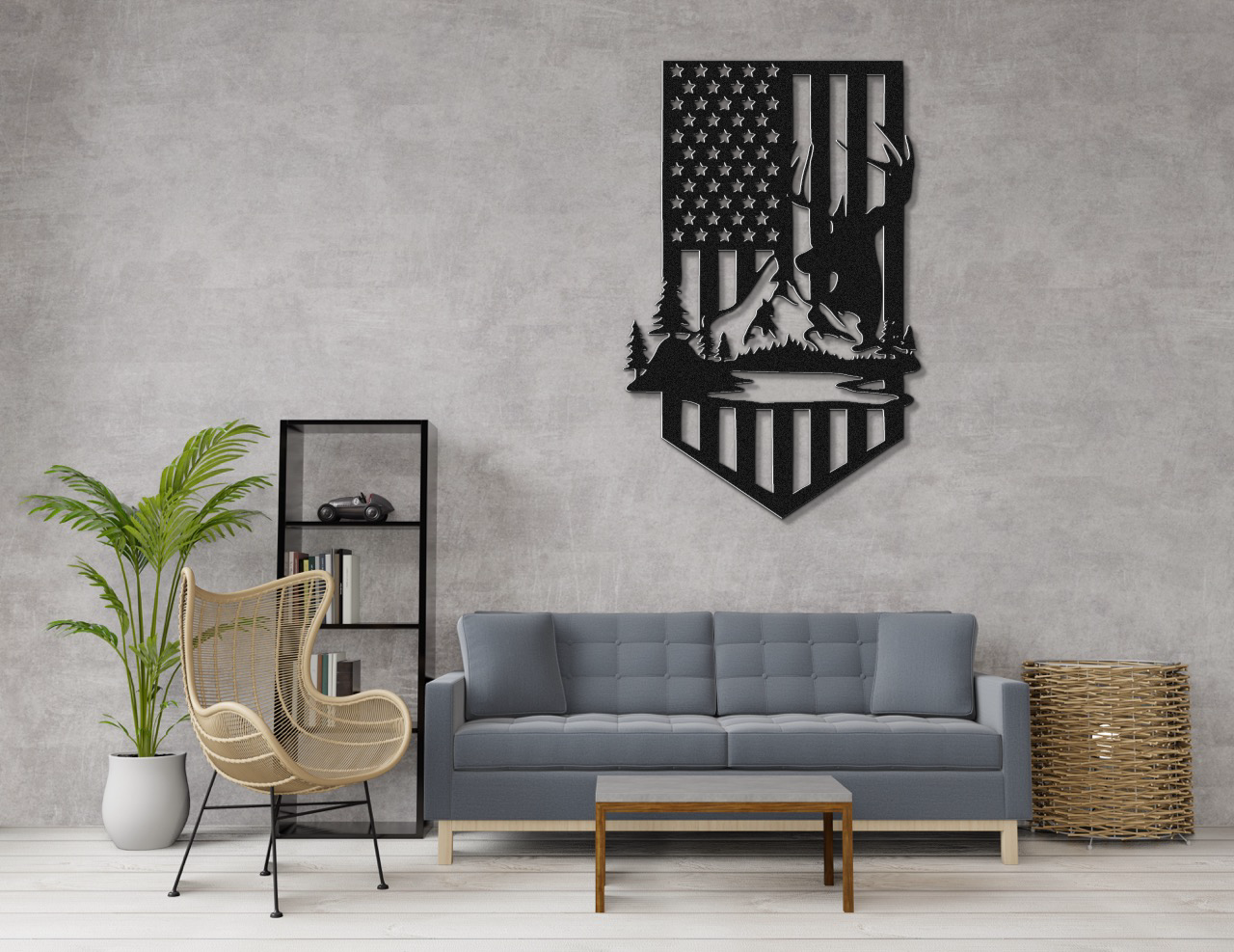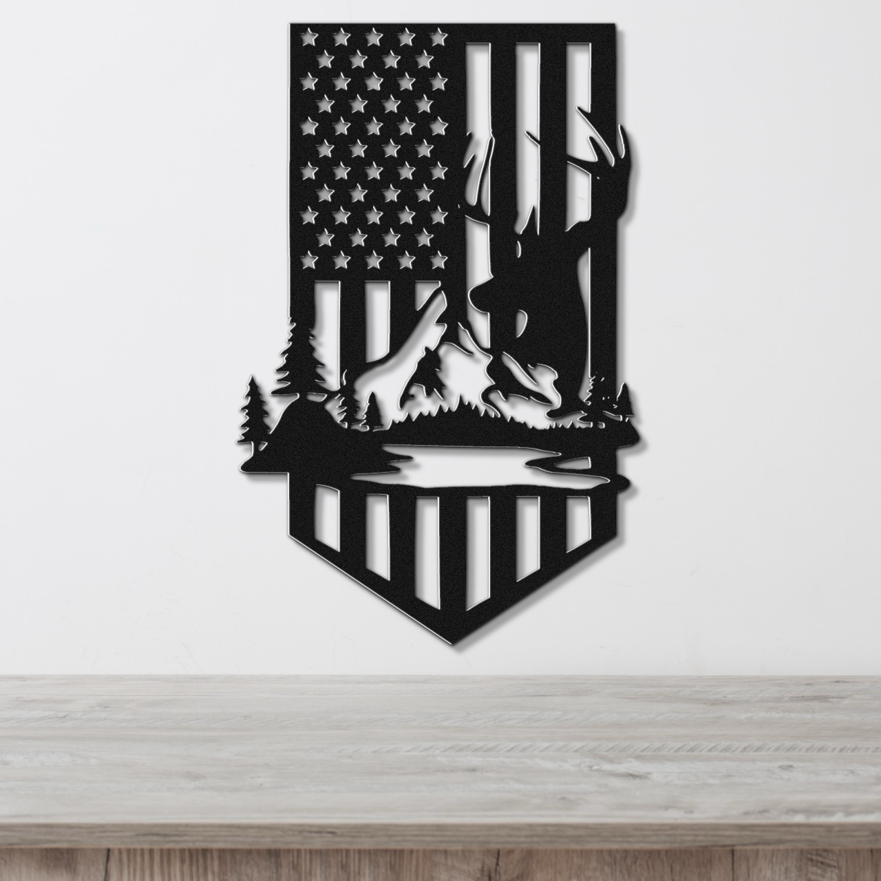 Patriotism Meets the Wild Combine your love of the outdoors with patriotic pride in this custom USA flag deer metal sign. Precision-crafted from 16-gauge steel, it’s ideal for hunters, nature lovers, or rustic decor.