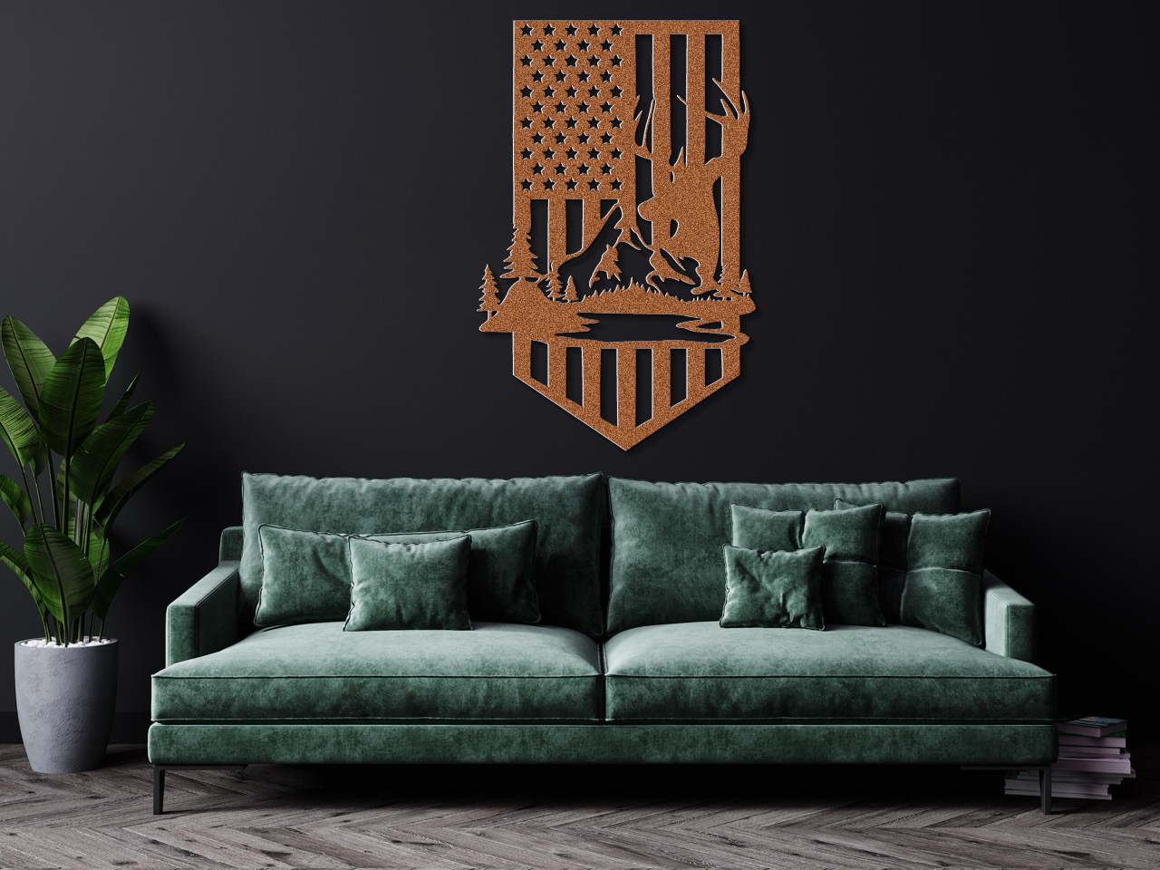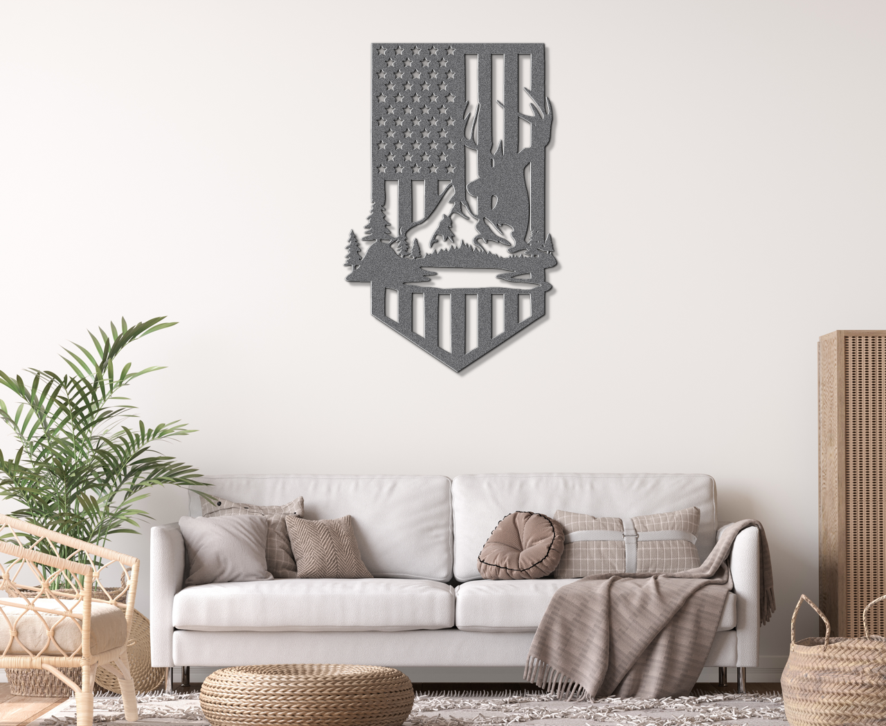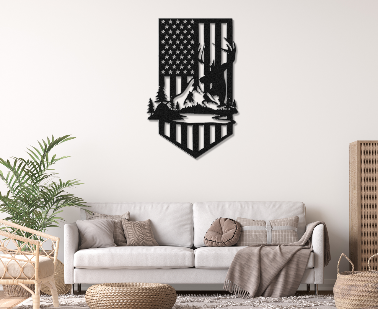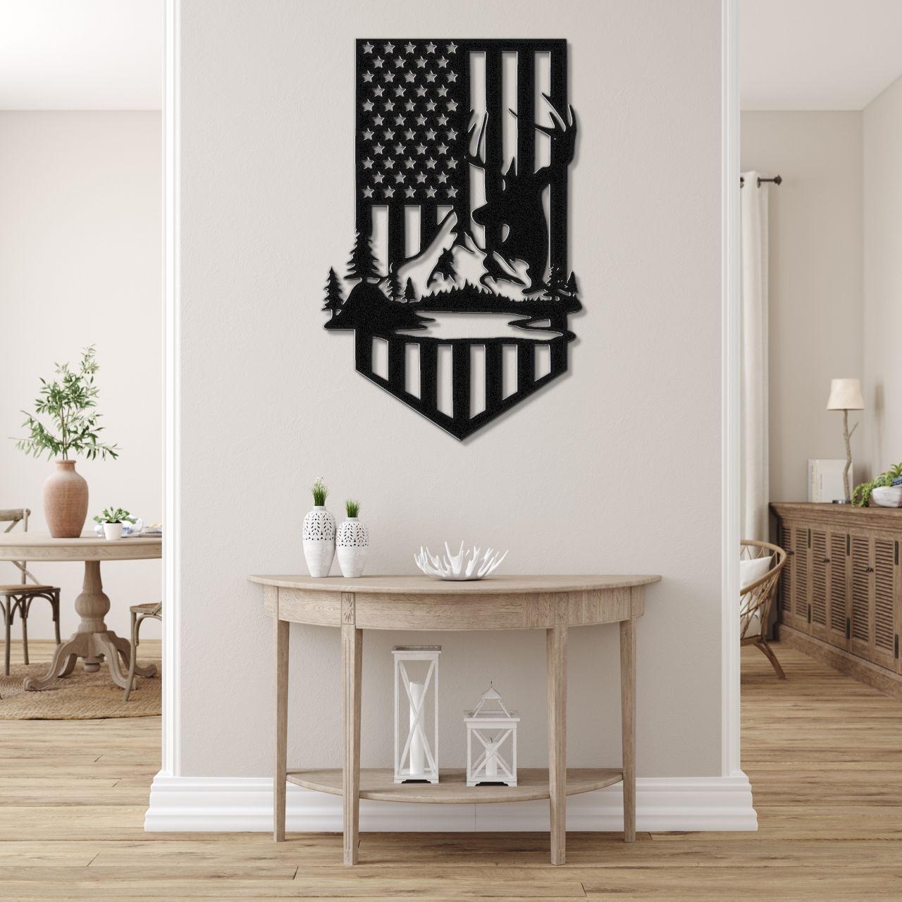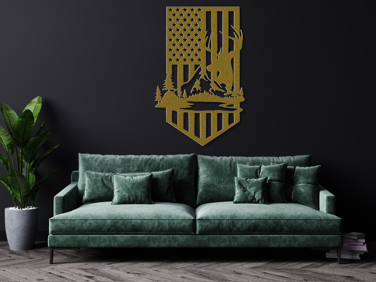 Patriotism Meets the Wild Combine your love of the outdoors with patriotic pride in this custom USA flag deer metal sign. Precision-crafted from 16-gauge steel, it’s ideal for hunters, nature lovers, or rustic decor.