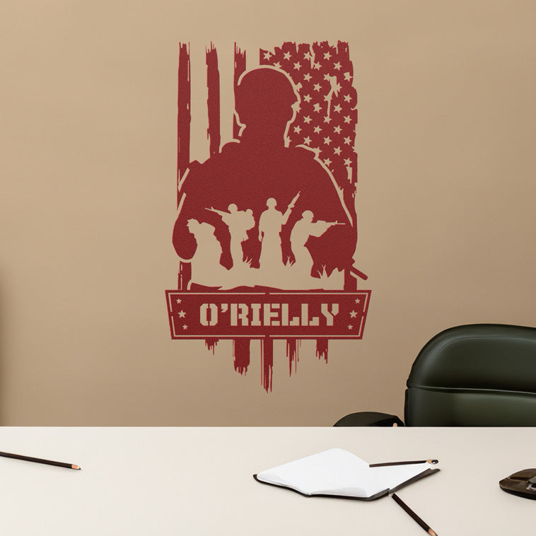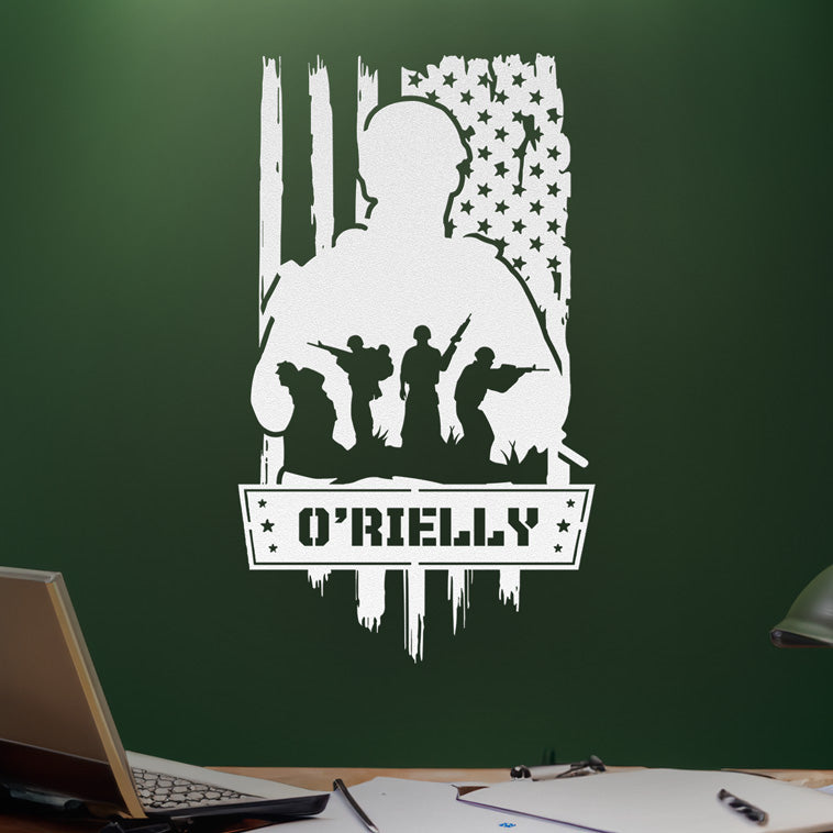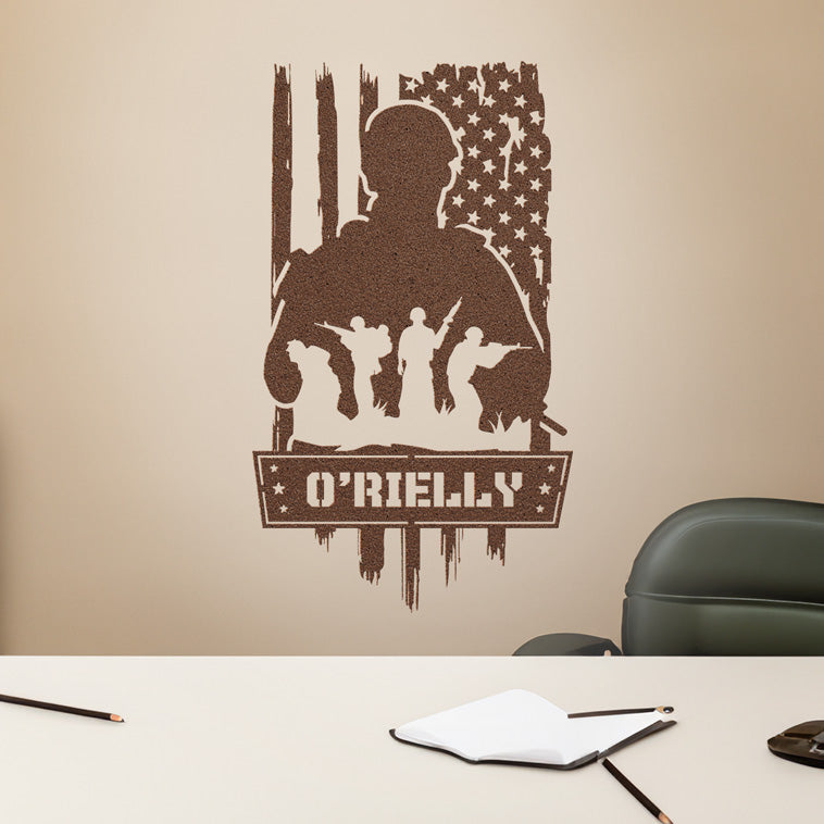 Celebrate camaraderie, service, and sacrifice with this custom Military Brotherhood Metal Sign. Featuring a powerful silhouette of a soldier with their platoon inside and a tattered American flag, this design honors the unbreakable bond among those who serve.